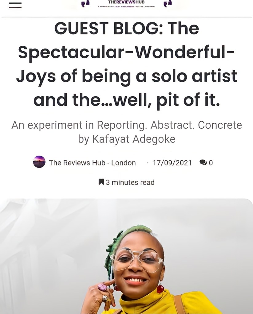 Other stage performances include: Searching for the Heart of Leeds (Malena) Leeds Playhouse, Inner Circle (Maya) Displace Yourself Theatre/ The Arc Stockton, Not an Open Mic; Women’s Comedy Theatre in the Mill, Revolution Bradford (Red Leader) Freedom Studios, Space Wars (Slimax) Wrongsemble Theatre, The Lonely society (Ione) Common Chorus Theatre, This Space Is Occupied (Apinke) Bent Architect Theatre, Superheroes (Black Panther warrior princess Zinger) Wrongsemble Theatre, Dragons Den parody; Dragon on the web series with Kinotrigger Productions.